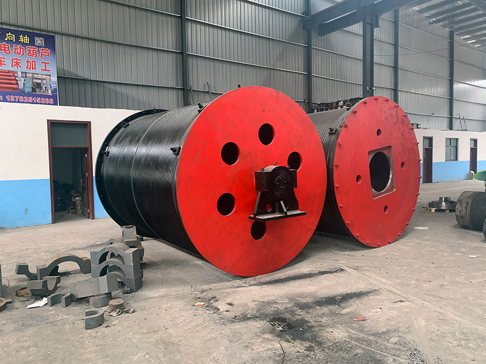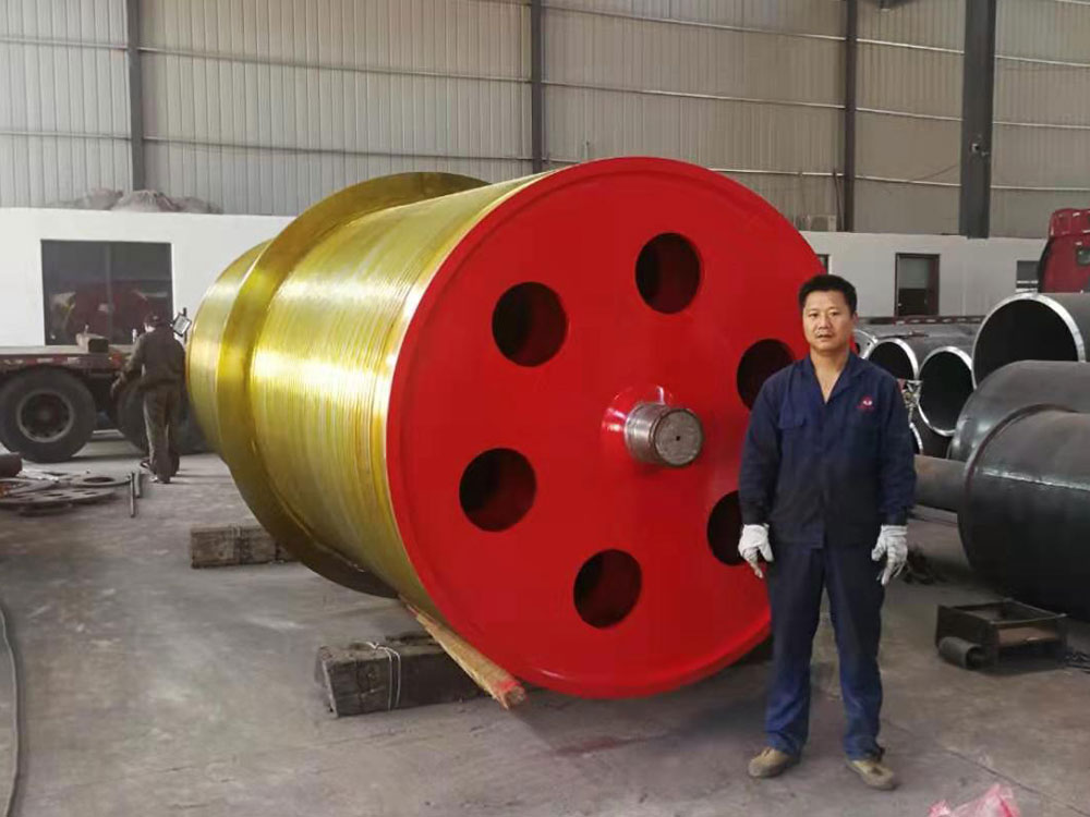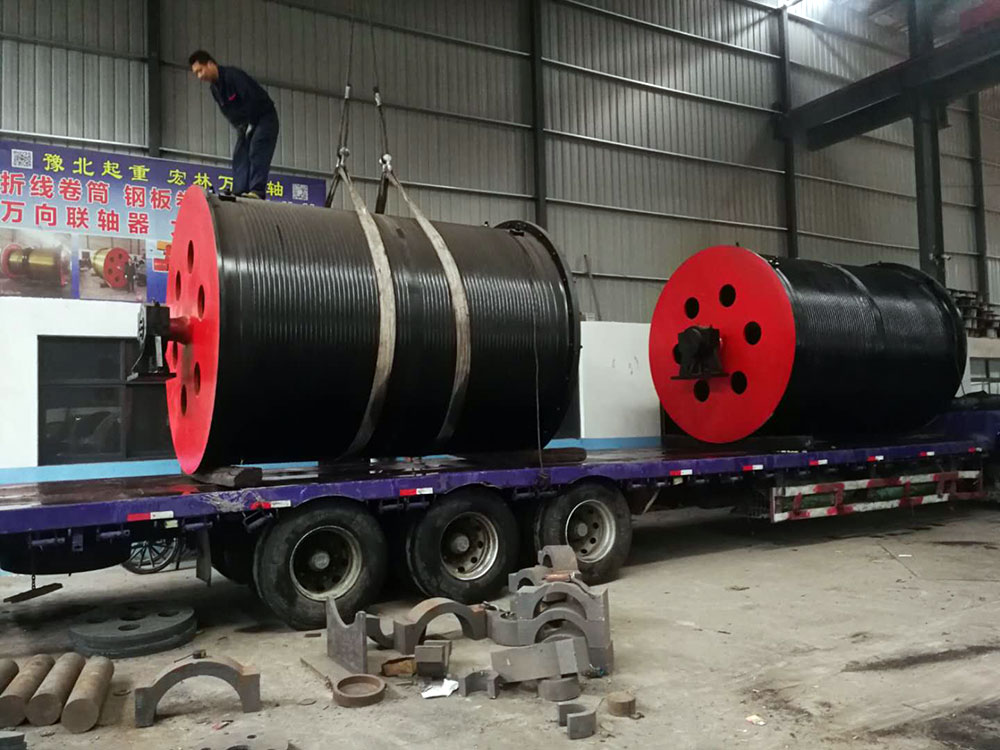 卷筒組主要由卷筒、卷筒軸、齒輪盤接手(或大齒輪)、卷筒轂、軸承體和軸承組成。